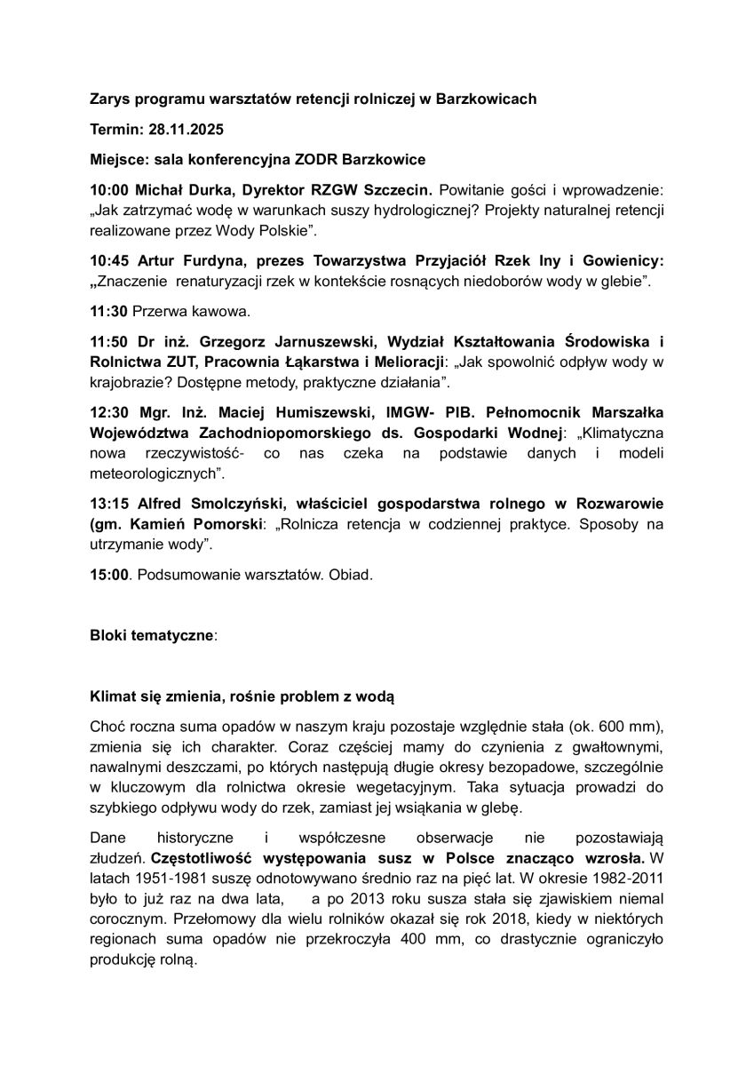 "Retencja rolnicza w dobie zmian klimatu. Wyzwania i możliwości"