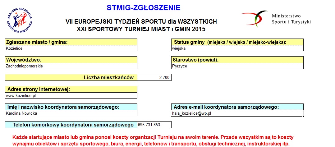 VII EUROPEJSKI TYDZIEŃ SPORTU dla WSZYSTKICH XXI SPORTOWY TURNIEJ MIAST i GMIN 26 maja – 1 czerwca 2015 r. KALENDARZ PLANOWANYCH IMPREZ TURNIEJOWYCH |